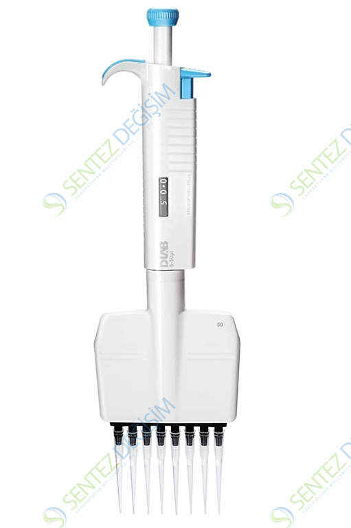 DLAB MicroPette Plus 8 Kanallı Ayarlanabilir Otomatik Pipet 5.0-50.0 μl Dağıtma başlığı, zahmetsiz pipetleme kolaylığı için döner. Ayrı piston ve uç konisi tertibatı, kolay onarım ve bakıma olanak tanır.