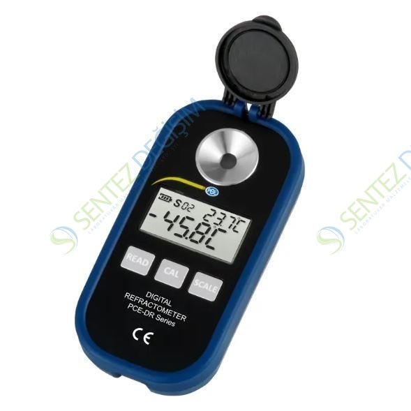 Fruktoz Refraktometre PCE-DRB-2Şeker içeriğinin tespiti / Brix, dekstran, fruktoz, glikoz, laktoz, maltoz ve kırılma indisi gibi ölçüm parametreleri / 1.3330 … 1.5177 nD