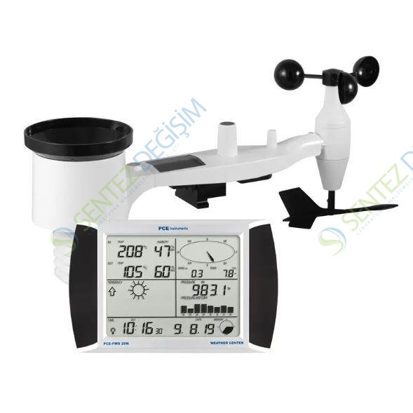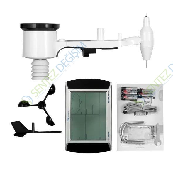Hava İstasyonu PCE-FWS 20NRüzgar yönü, rüzgar hızı, sıcaklık, bağıl nem ve yağış miktarı belirleme /Ayarlanabilir alarm fonksiyonları / USB arayüzü / Analiz yazılımı /Vericiye güç sağlamak için güneş paneli ve pil / İletim frekansı: 868 MHz