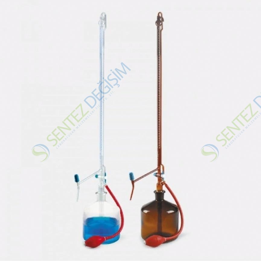 ISOLAB Büret - Otomatik - Şeffaf - Ptfe Ara Musluklu - As Kalite - Grup Sertifikalı - Şelbah Çizgili - Mavi Skala - 25 mlÖn vakum kalibrasyon yöntemi ile borosilikat 3.3 borudan ISO 385 standardına uygun olarak üretilirler. DIN/ISO Class “AS” standartına uygun olarak kalibre edilirler. Ürünün Almanya federal ölçü ve ağırlık kurallarına uygunluğunu onaylayan (“DE-M”) damgasınını taşırlar. Otomatik robotlar tarafından yürütülen kalibrasyon işlemi gerçek değerin nominal değerden sapmasını önler. Gövde üzerinde lot numarası ve uygunluk damgası basılıdır. Lot sertifikasına internet web sayfası üzerinden ulaşılabilir. Sıvıyı büret içinde kapalı devre hareket ettiren PTFE ara musluk ile donatılmışlardır. Hiçbir koşulda yağlanmaya gerek göstermeyen PTFE “iğne” vanalı musluk ile donanmışlardır. Şeffaf büretler, menisküs çizgisinin tam ve doğru olarak gözlenmesine olanak veren şelbah bantı ile donatılmışlardır. Şeffaf büretlerde gövde üzerindeki yazı ve işaretlerde mavi boya kullanılır. Amber büretlerde gövde üzerindeki yazı ve işaretlerde beyaz boya kullanılır. Otomatik büretler şişe ve büret puarı olmaksızın teslim edilirler. Şişe ve büret puarı ayrıca sipariş verilmelidirler.