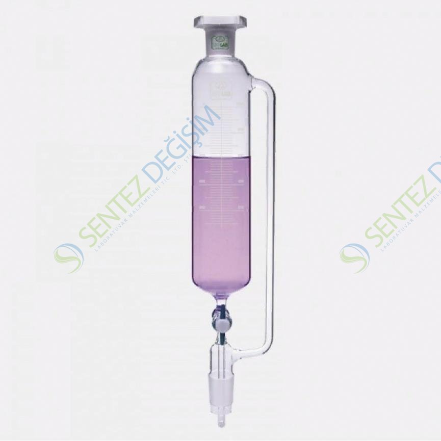 ISOLAB Damlatma Hunisi Basınç Borulu NS 19/26 erkek şilif NS 29/32ISO 4800 standardına uygun olarak borosilikat 3.3 camdan gövdede hacim çizelgesi basılı olarak üretilirler. Kuvvetlendirilmiş şilif kenarları taşınma ve yıkama sırasında oluşabilecek kırılmaları önler. Mükemmel rodajlanmış ve pürüzsüz boyun şilifleri DIN 12242 standartına uygun olarak üretilirler. Gövde üzerindeki hacim göstergesi ve işaretlerde beyaz boya kullanılır. P.E kapak ve yağlanmaya gereksinim göstermeyen, değiştirilebilir PTFE musluk ile donatılmışlardır.