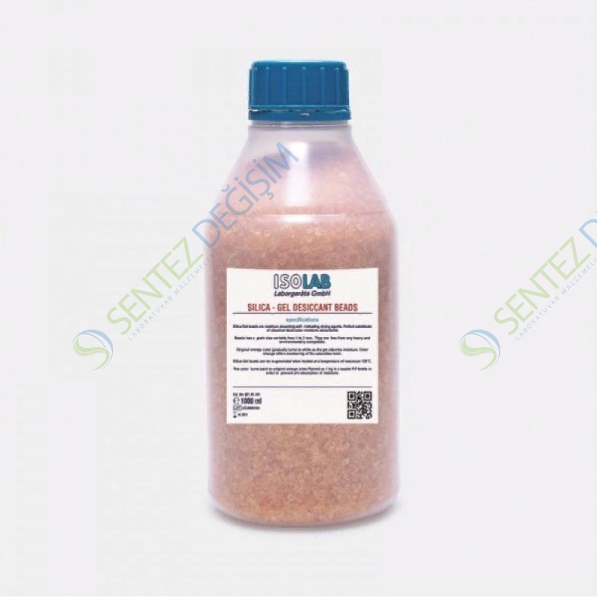 ISOLAB SILICAGEL desiccant beads (Silikajel Desikatör Boncukları) 1 KgSilikajel boncuklar ortam nemini emerek azaltan, renk değişkenli ürünlerdir. Klasik nem tutuculara göre yeni ve avantajlı bir alternatif oluştururlar. Ağır metal içermediklerinden çevre dostu olan boncukların çapı 1 ile 3 mm arasında değişmektedir. Aktif halde turuncu olan rengi nem çekildikçe kademeli olarak beyaza döner. Renk değişimi nem tutma işleminin derecesini gösterir. Boncuklar kolaylıkla rejenere edilirler. Maksimum 120°C’a kadar ısıtıldıklarında yeniden aktif hale geçerler. Rejenerasyondan sonra renk tekrar turuncu olur. 1 kg’lık paketler halinde nem çekmeyi önleyen P.P şişe içinde satılırlar.