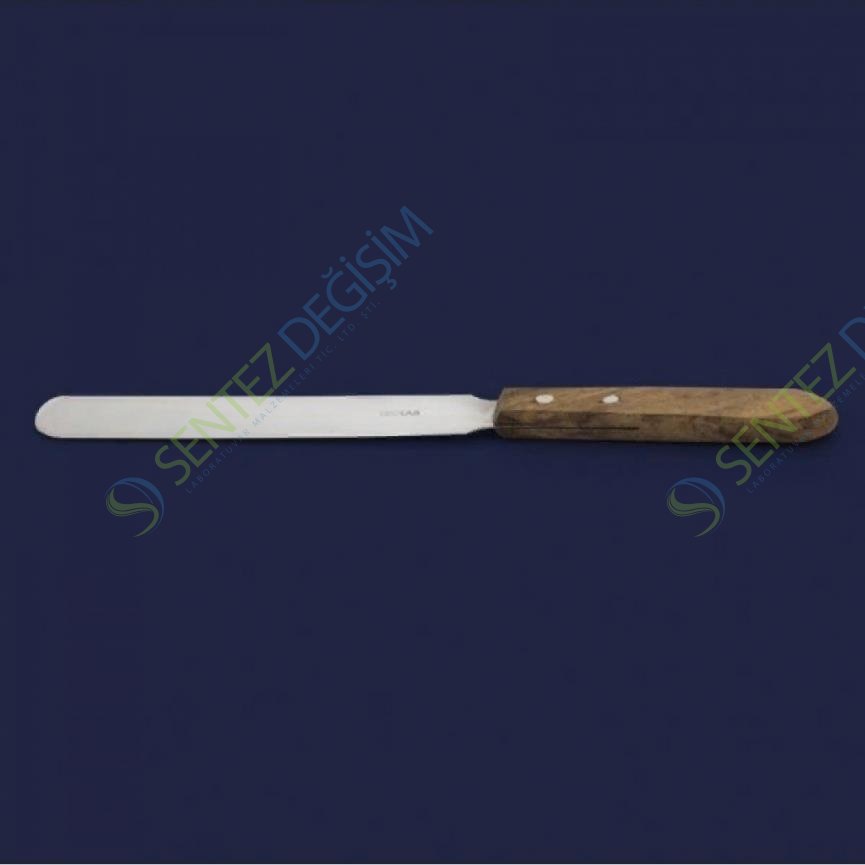 ISOLAB Yassı Bıçaklı Tahta Saplı Paslanmaz Çelik SpatülKimyasallara, korozyona, ısıya ve darbelere dayanıklı AISI 304 kalite paslanmaz çelikten ahşap saplı olarak üretilirler. Büyük ölçekli ürün aktarımı için önerilirler. Bir ucunda yassı ve bıçak formlu spatül diğer uçta ise ahşap sapı ile üretilmişlerdir. Kalın ve kaynaksız üretim tekniği uzun kullanım garantisi verir. Pürüzsüz ve parlatılmış yüzeyleri kolay temizlik olanağı sağlar.