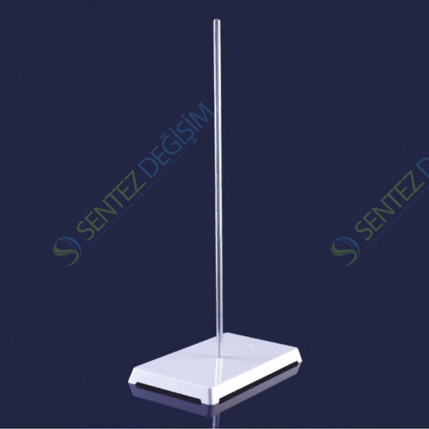 Yüksek stabiliteye sahip dikdörtgen taban, ABS’den üretilir. 175 x 300 mm boyutlarında olan taban iki adet delik içerir. Aynı çubuğun ihtiyaca göre merkeze veya arkaya tarafa yakın takılabilmesi kullanıcıya ek avantajlar sağlar. Beyaz taban rengi titrasyon işlemlerinde renk dönüm noktasının hatasız gözlenmesine olanak verir. 600 mm uzunlukta vidalı tip galvanize çelik taşıma çubuğu ile teslim edilir.