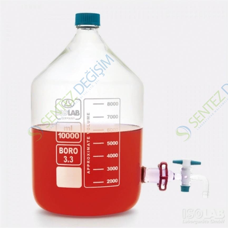 ISOLAB Aspiratör Şişesi "Cam” "Musluklu” 20 LBorosilikat 3.3 camdan kalın duvarlı ve kuvvetlendirilmiş ağız kenarlı olarak üretilirler. Sıvıların, stoklanmaları, taşınmaları ve aktarılmaları için idealdirler. Geniş boyunları kolay doldurum ve boşaltımı sağlar. Kapaklar sıkı kavramayı garantileyen geniş vida aralığına sahiptirler. Kapak tasarımı kesin sızdırmazlığı tam olarak garanti eder. Ters vakum formasyonunu önleyen sızdırmaz ve damlatmaz özellikli musluklar ile donatılmışlardır.