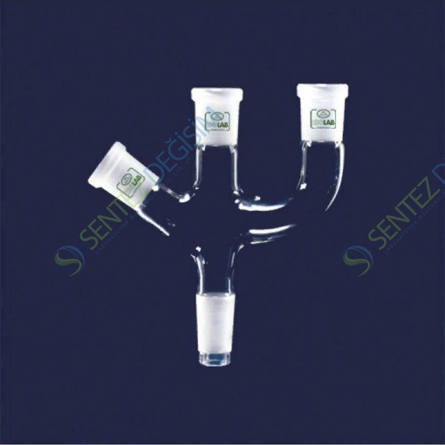 ISOLAB 065.44.001 Adaptör 3 Boyunlu Açılı Ve Paralel Dişi Şilif : NS 14/23 Erkek Şilif : NS 14/23 Açılı Ve Paralel Dişi Şilif : NS 14/23