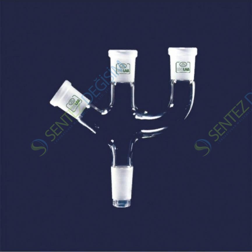 ISOLAB 065.44.002 Adaptör 3 Boyunlu Açılı Ve Paralel Dişi Şilif : NS 19/26 Erkek Şilif : NS 19/26 Açılı Ve Paralel Dişi Şilif : NS 19/26