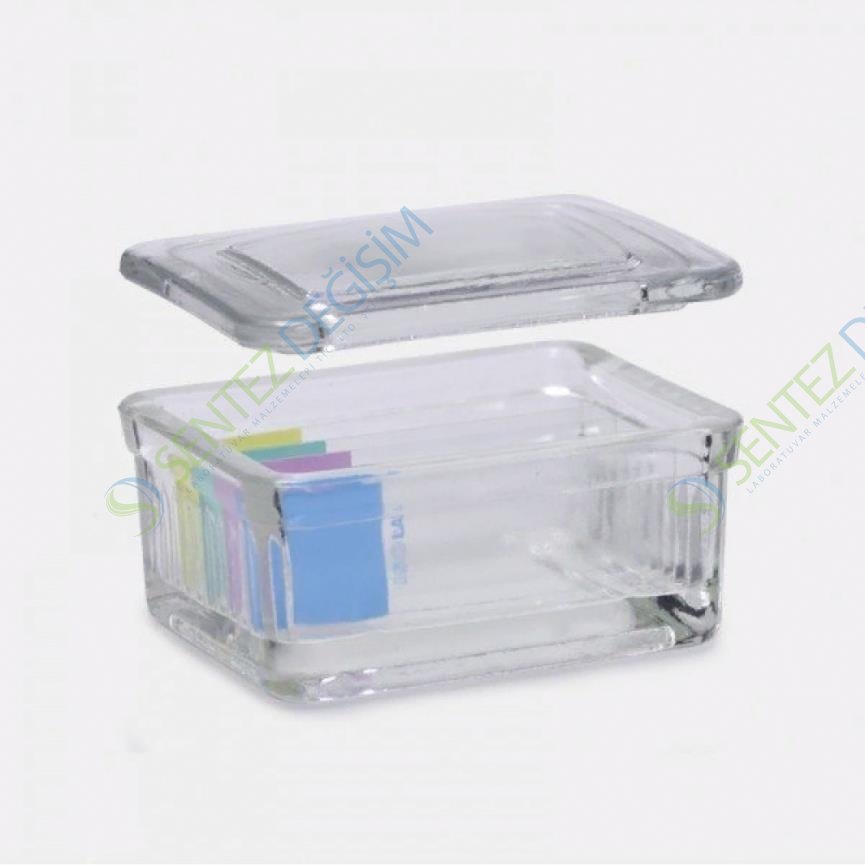 Mikroskop lamlarını yatık konumda taşıma amacı ile kalın duvarlı soda camdan üretilir. Kapağı ile beraber teslim edilir. 10 adet tek mikroskop lamı veya sırt sırta yerleştirilmiş 10 çift lam taşıma kapasitesine sahiptir.