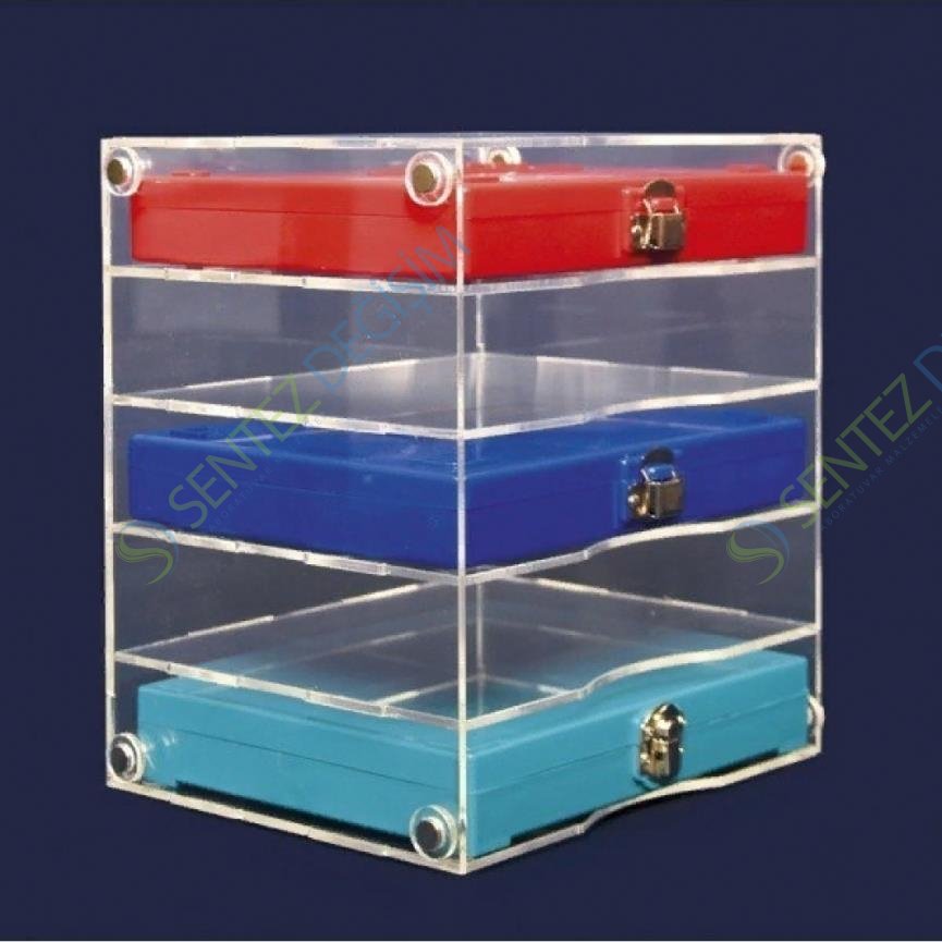 5 adet lam kutusu taşıma kompartımanlı olarak akrilikten üretilirler. Lam kutularının üst üste yerleştirilip kaldırılmaları için pratik çözüm sunar. İstenilen kutuya kolay erişimi sağlarlar. İstendiğinde yan yana dizilerek uzun sıra oluşturabilir. Benzer şekilde üst üste konduklarında yerden tasarruf sağlar.