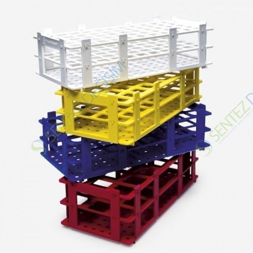 ISOLAB TÜP STANDI "polipropilen”, "demonte”Modifiye edilmiş polipropilenden üretildiklerinde su banyosu içinde yüzmeden ve hareket etmeden durabilirler. Stantlar yer kazanımı açısından demonte olarak teslim edilirler.