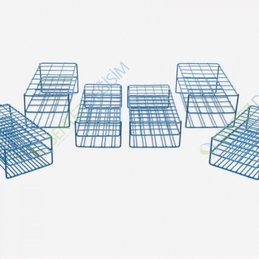 ISOLAB Tüp Standı "epoksi kaplamalı çelik''Kare tüp yuvaları, dayanıklı çelik tel yapı ve kolay kullanımı garantileyen taban tasarımı ile ideal çözüm sunarlar. Bir diğerine kaynaklı ve üzerleri ısı uygulamalı epoksi kaplı çelik tellerden üretilirler. Epoksi kaplama kesinlikle korozyona karşı dayanıklı olup tuzlara, orta kuvvetli asit ve bazlara ve organik solventlere karşı dayanıklıdır. Otoklav çalışmaları için idealdirler. -200°C ile +121°C arasında kullanılabilirler.
