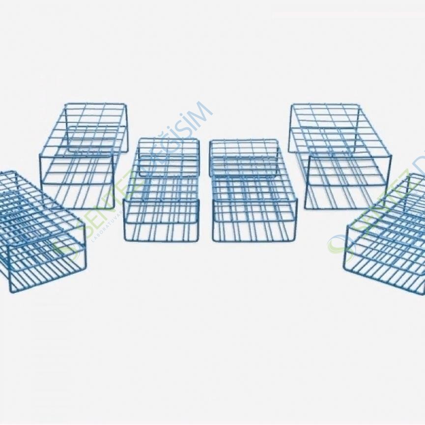 ISOLAB Tüp Standı "epoksi kaplamalı çelik''Kare tüp yuvaları, dayanıklı çelik tel yapı ve kolay kullanımı garantileyen taban tasarımı ile ideal çözüm sunarlar. Bir diğerine kaynaklı ve üzerleri ısı uygulamalı epoksi kaplı çelik tellerden üretilirler. Epoksi kaplama kesinlikle korozyona karşı dayanıklı olup tuzlara, orta kuvvetli asit ve bazlara ve organik solventlere karşı dayanıklıdır. Otoklav çalışmaları için idealdirler. -200°C ile +121°C arasında kullanılabilirler.