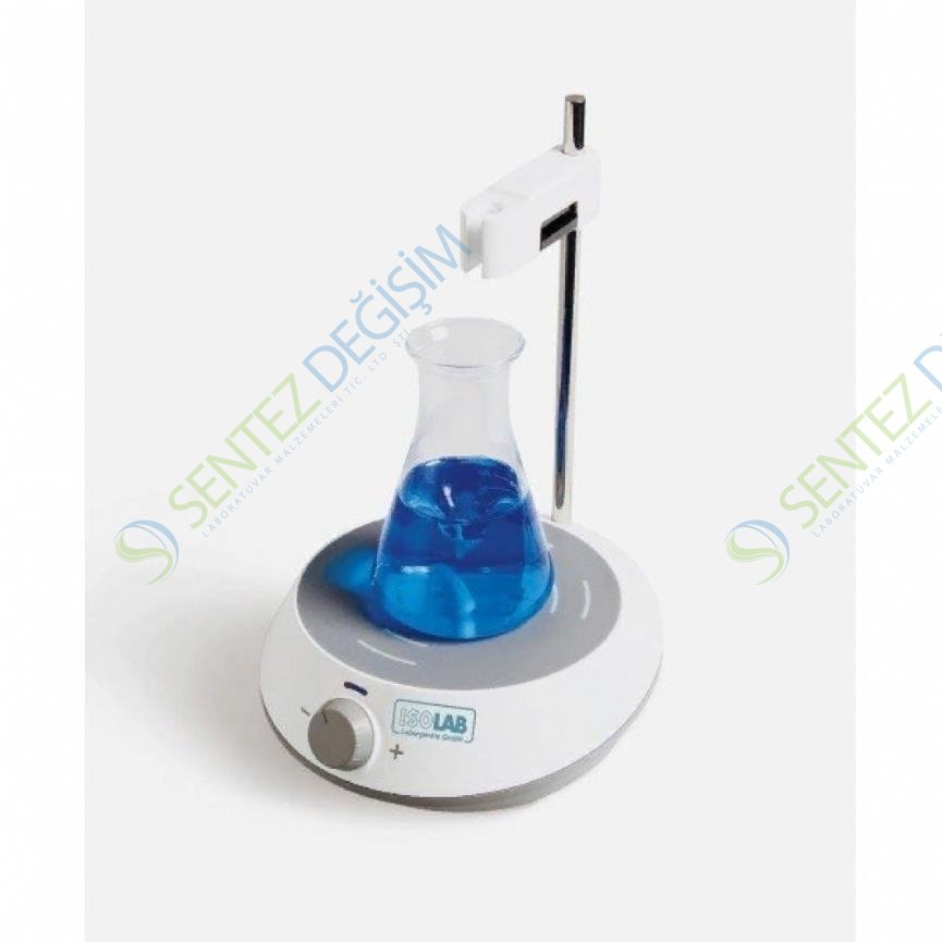 ISOLAB 613.05.001 karıştırıcı - manyetik - ısıtıcısız - göstergesizİsolab Manyetik Karıştırıcılar, Çok hafif gövde ağırlığı ve kompakt tasarımı ile özellikle titrasyon işlemleri için kuvvetle önerilir. İsolab Karıştırıcı ile 300 ile 2.000 rpm arasında elektronik olarak kontrol edilebilen hız en üst düzeyde bile yumuşak dönümlü, kararlı ve etkin karıştırmayı sağlar. Yüksek performanslı kömürsüz DC motor yumuşak bir başlangıç ve hızlı bir duruş olanağı ile 1,5 litreye kadar karıştırma yapar. PET dış gövde tüm mekanik ve elektronik parçalara dış etkenlere karşı maksimum korunma sağlar ve uzun kullanım garantisini verir. Kaymayan silikon ayaklar titreşimleri önleyerek mükemmel stabilite garantisi verirler. Elektrodları ve probları tutmaya yarayan yüksekliği ayarlanabilir, kıskaçlı stant ile donatılmıştır.