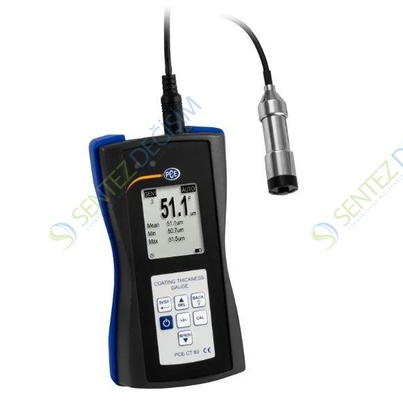 Harici sensörlü ergonomik şekle sahip kaplama kalınlığı ölçer, yüksek hassasiyeti ile ölçüm sonuçlarının hızlı bir şekilde belirlenmesini sağlar. Kaplama kalınlığı ölçer PCE-CT 80-FN1D5, çelik / demir üzerindeki boya, plastik, krom, bakır, çinko, emaye vb. gibi manyetik olmayan kaplamaların yanı sıra bakır, alüminyum, pirinç, paslanmaz çelik ve eloksallı alüminyumda boya, plastik, emaye, kağıt, cam, kauçuk vb. gibi iletken olmayan kaplamaları da ölçer.