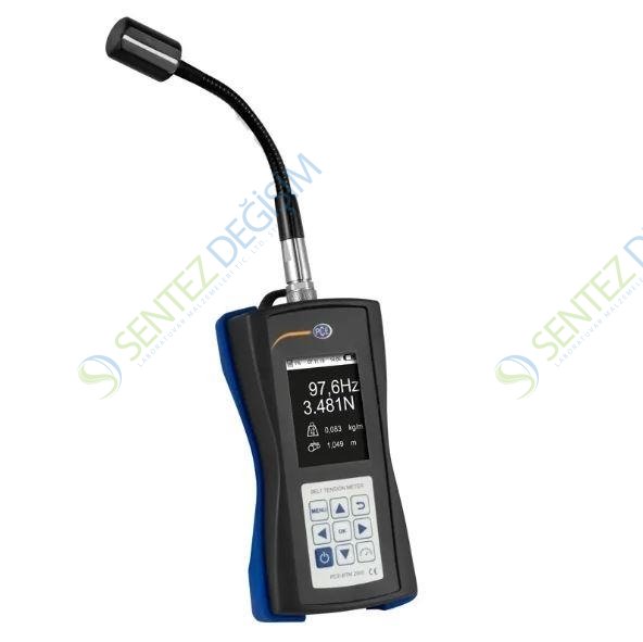 Kayış gerginliği ölçer PCE-BTM 2000, kayış gerginliği kuvvetinin belirlenmesi için kullanılan bir cihazdır. Cihaz, bir ekran ve yarı esnek kaz boynu bir kabloya yerleştirilmiş sensör ucundan oluşur. Kaz boynu kablo ile sensör ucu esnek bir şekilde konumlandırılabilir ve ulaşılması zor yerlerde bile kuvvet ölçümü yapılabilir. Kayış gerginliği ölçer ile sabit durumdaki kayışın kayış gerginliği (Newton cinsinden) ve frekansı (Hz cinsinden) ölçülür.