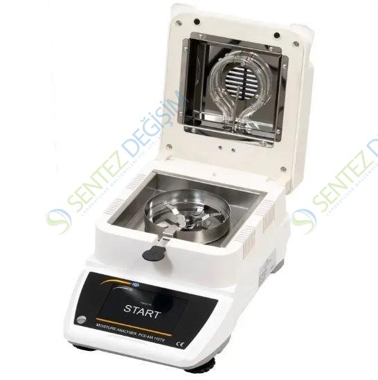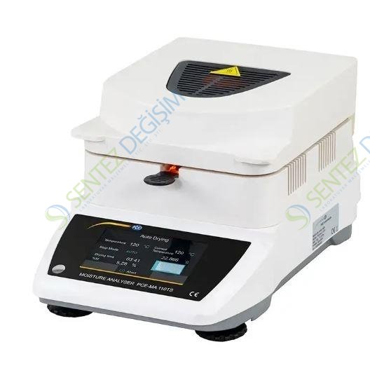 Nem tayin cihazı PCE-MA 110TS’nin 0 … 100% nem ölçüm aralığı bulunur. Nem tayin cihazı, 5 inç dokunmatik ekran üzerinden çalışır. Nem tayin cihazı kullanılarak nem içeriğini belirlemek için numune, numune tepsisine eşit bir şekilde dağıtılır. Ardından, numune tepsisi nem tayin cihazına yerleştirilir ve kapatılır. Nem tayin cihazı, gerekli tüm parametreler ayarlandıktan sonra ölçümü başlatır. ±0.003 g’lık hassasiyeti nem tayin cihazını hassas bir ölçüm aracı haline getirir.