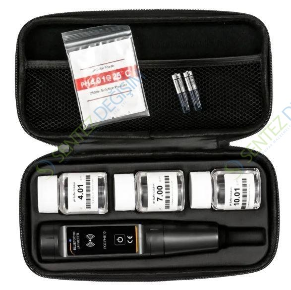 pH Metre PCE-PHB 10Bluetooth arayüzü / Kalibrasyon referansları dahil / -2.0 … 20.0 pH ölçüm aralığı / Opsiyonelkalibrasyon sertifikası / 0 … 100 °C arasında sıcaklık kompanzasyonu / Değiştirilebilir pil / Taşıma çantası / Çıkarılabilir elektrod
