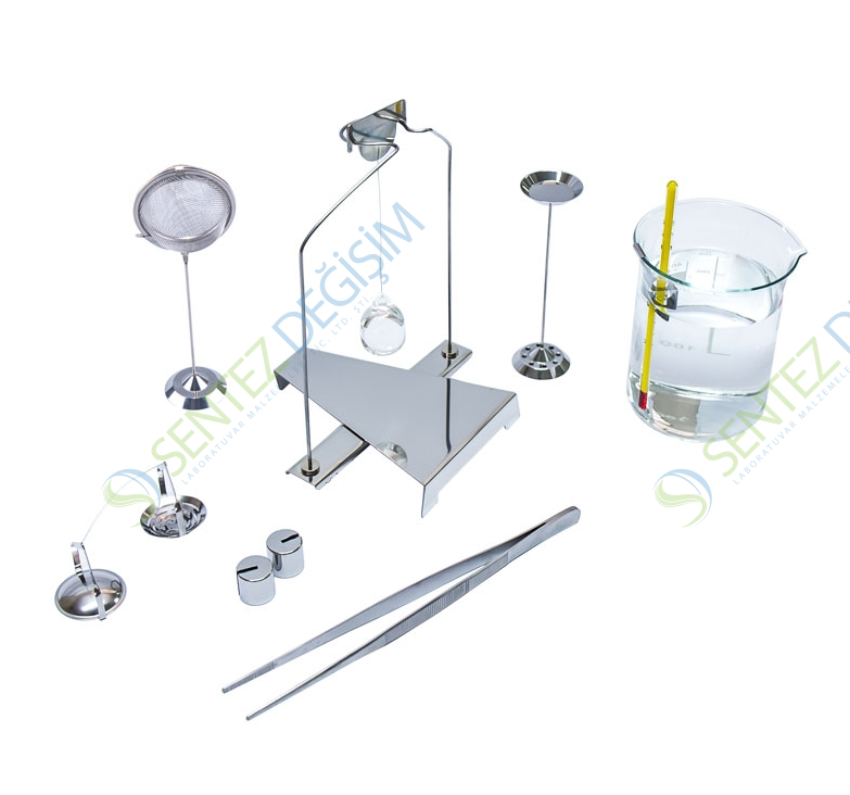 Katıların ve sıvıların yoğunluğunu belirlemek için yoğunluk belirleme kiti, ø85 ve ø100mm tartım kefesine sahip laboratuvar terazileri ile işbirliği için tasarlanmıştır.