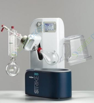 STRIKE 300 Döner EvaporatörSTRIKE 300, son teknoloji ürünü laboratuvar döner buharlaştırıcısını temsil eder.Strike 300 döner evaporatör, performans optimizasyonunun yanı sıra tamamen güvenli bir cihaz elde etme ikili amacı akılda tutularak tasarlanmıştır. Şeffaf koruyucu kalkan, tüm çalışma aşamalarında hem kullanıcıya hem de çalışma ortamına hareketli ve ısınan parçalardan maksimum koruma sağlar. Sürekli vakum sızdırmazlığını garanti eden mekanik sızdırmazlık sisteminde bakım gerektirmez. LCD arayüzü ve dokunmatik ekranıyla donatılmış mikroişlemci, kullanıcının ihtiyaç duyduğu tüm parametreleri her zaman kontrol edebilmesi ve değiştirebilmesi için çoklu programlanabilir. Strike 300, GLP (İyi Laboratuvar Uygulamaları) sistemi ile donatılmıştır. Otomatik bir mekanik cihaz, cam eşya-motor grubunu kaldırır ve cihaza bir vakum kontrolörü ve/veya sıcaklık probu bağlanabilir.