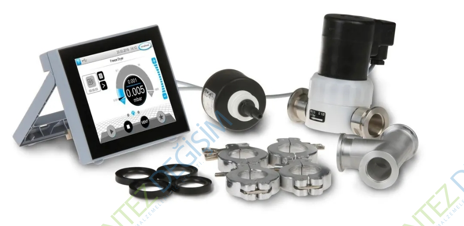 - Kimya laboratuvarlarındaki tüm hassas vakum uygulamalarının vakum kontrolü için, 5 mbar'dan ince vakuma (10 -3 mbar) kadar sürekli kontrol aralığına sahip komple paket
