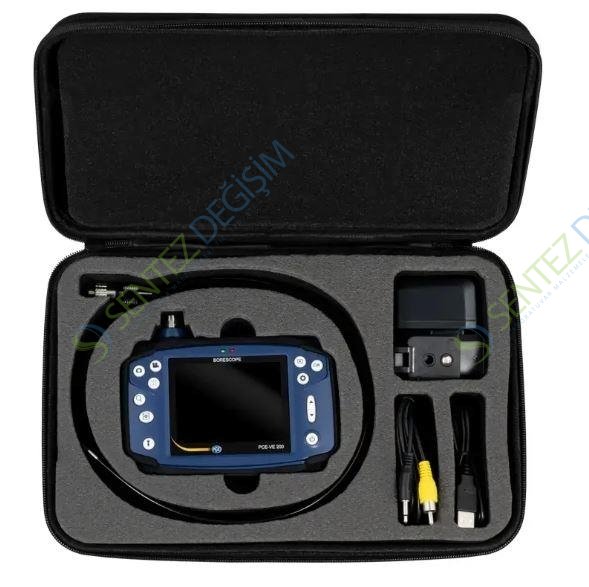 Videoskop PCE-VE 200STahribatsız makine teşhisi / 3.7 mm kamera başlığı çapı / 3.5 inç LCD ekran / 2600 mAh pil /1 metre kablo uzunluğu / Kamera başlığında ayarlanabilir 6 beyaz LED / Mikro SD kart girişi