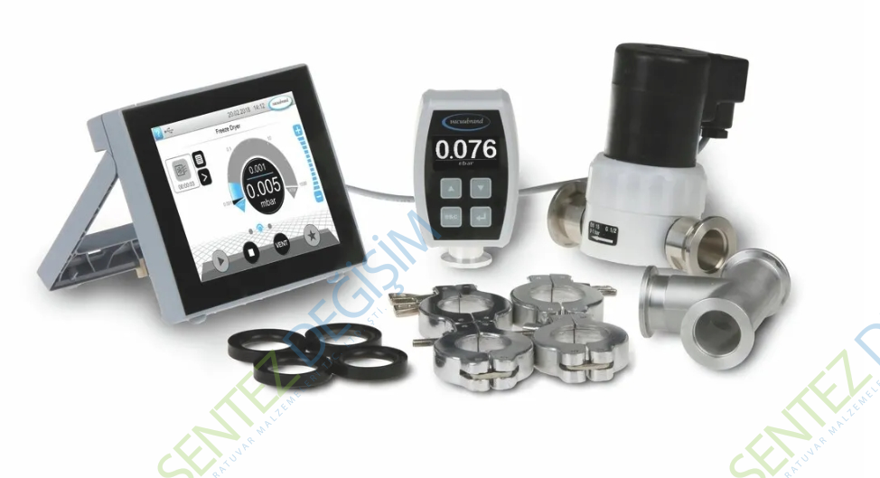 Kimya laboratuvarlarındaki tüm hassas vakum uygulamalarının vakum kontrolü için atmosferden ince vakuma (10 -3 mbar) kadar sürekli kontrol aralığına sahip komple paket